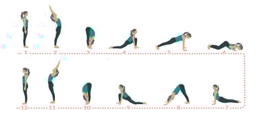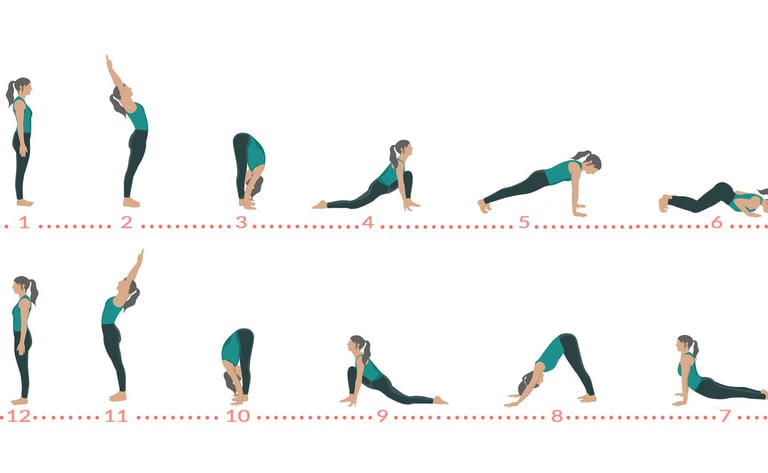 Ele me ensinou uma sequencia clássica de posturas chamada "Saudação ao Sol" ou Surya Namaskar.